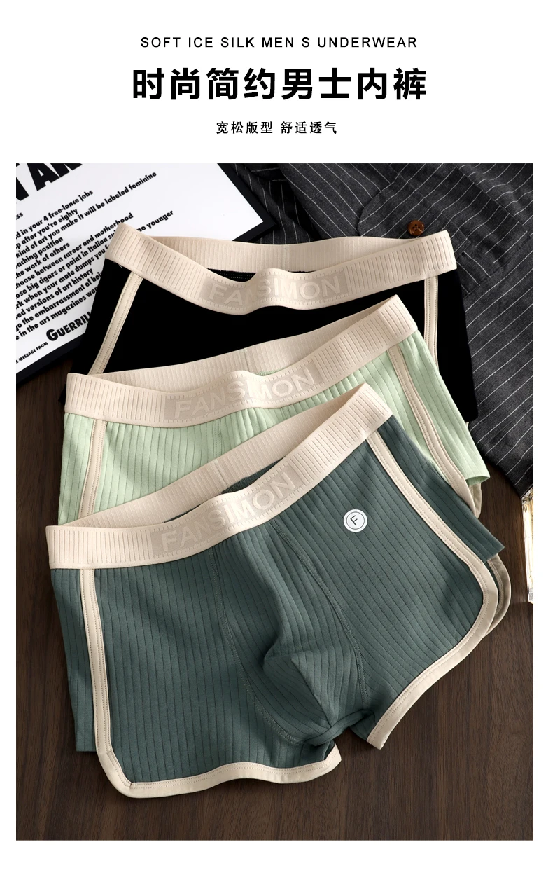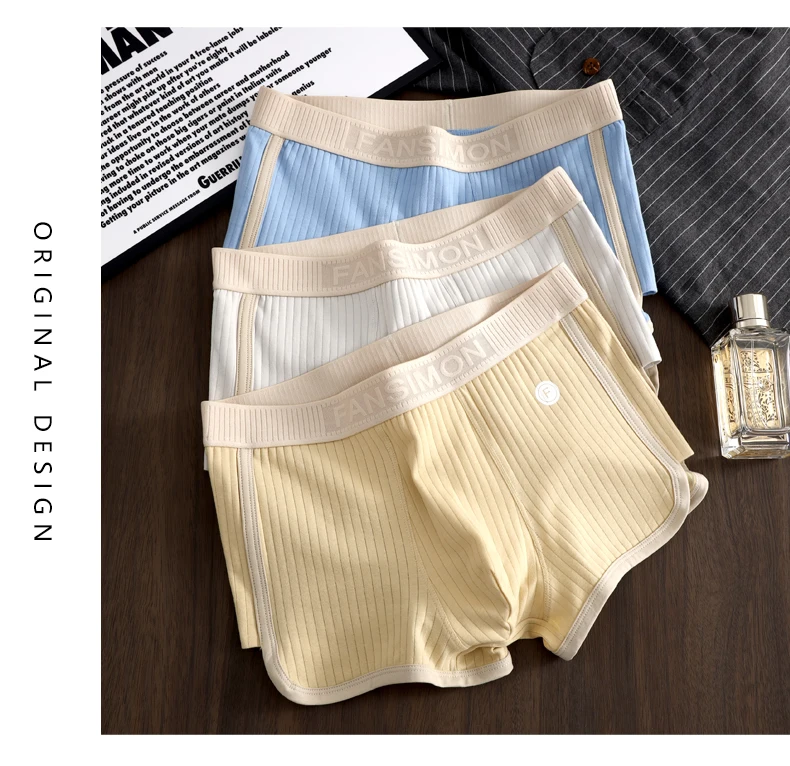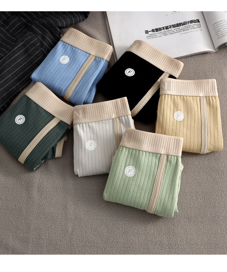 3 unids/lote nuevo Boxer ropa interior para hombre Boxershort transpirable de algodón a rayas Boxers para hombre pantalones de cuatro esquinas de cintura media de talla grande