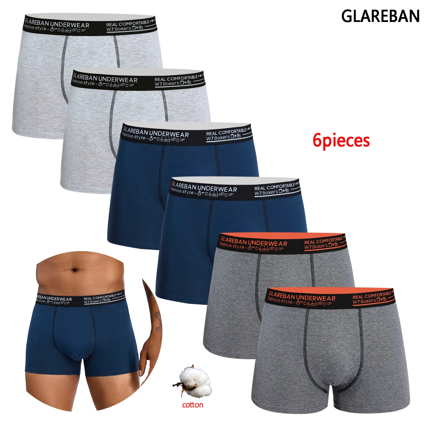 6 piezas, Bóxer de algodón para hombre, ropa interior, calzoncillos de lujo, caja deslizante, 2024