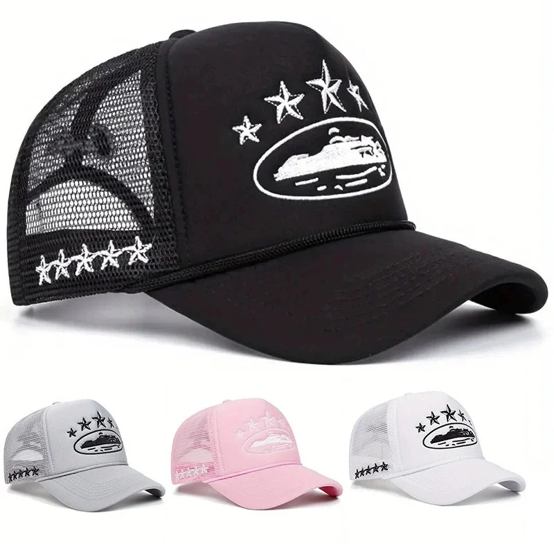 Nuevos sombreros de béisbol con estampado Unisex, nuevas gorras de camionero de moda urbana versátiles de malla con sombrilla Personal transpirable de Hip Hop Unisex
